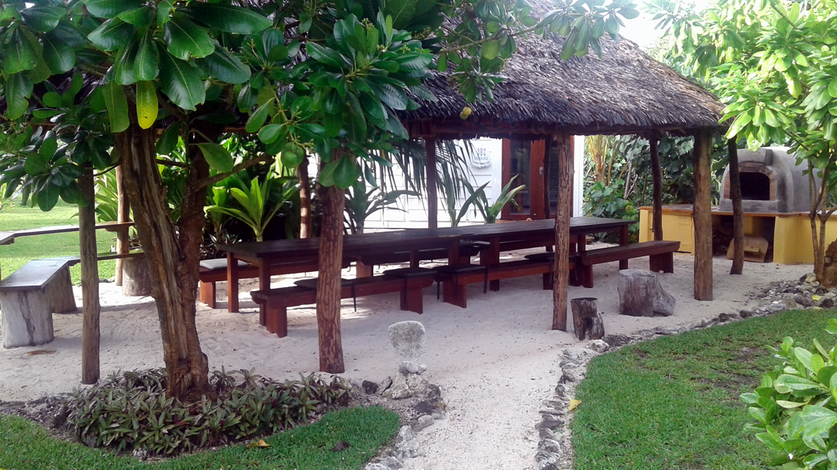 Well we now have a fabulous purpose built kitchen. It was inspired by the Caribbean… with amazing Portuguese floor tiles. We have already prepared some amazing food here. There is seating for 6-8 inside the kitchen and 20 in the nakamal . Of a night it lights up with these retro strings of lights. Can’t wait to cook for you!